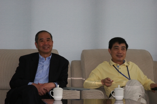 党委副书记王江水在三楼贵宾室向客人介绍我院的发展现状